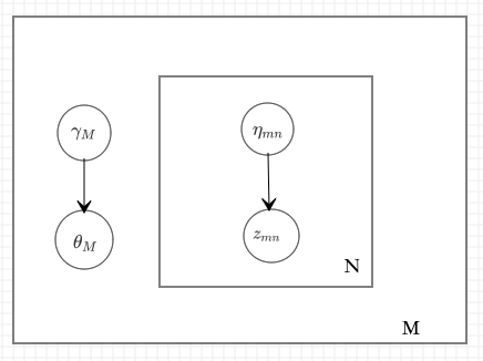 下面将变分EM算法应用至简化版的LDA模型中,当然也可以应用于正常的LDA模型中,结果是等价的。