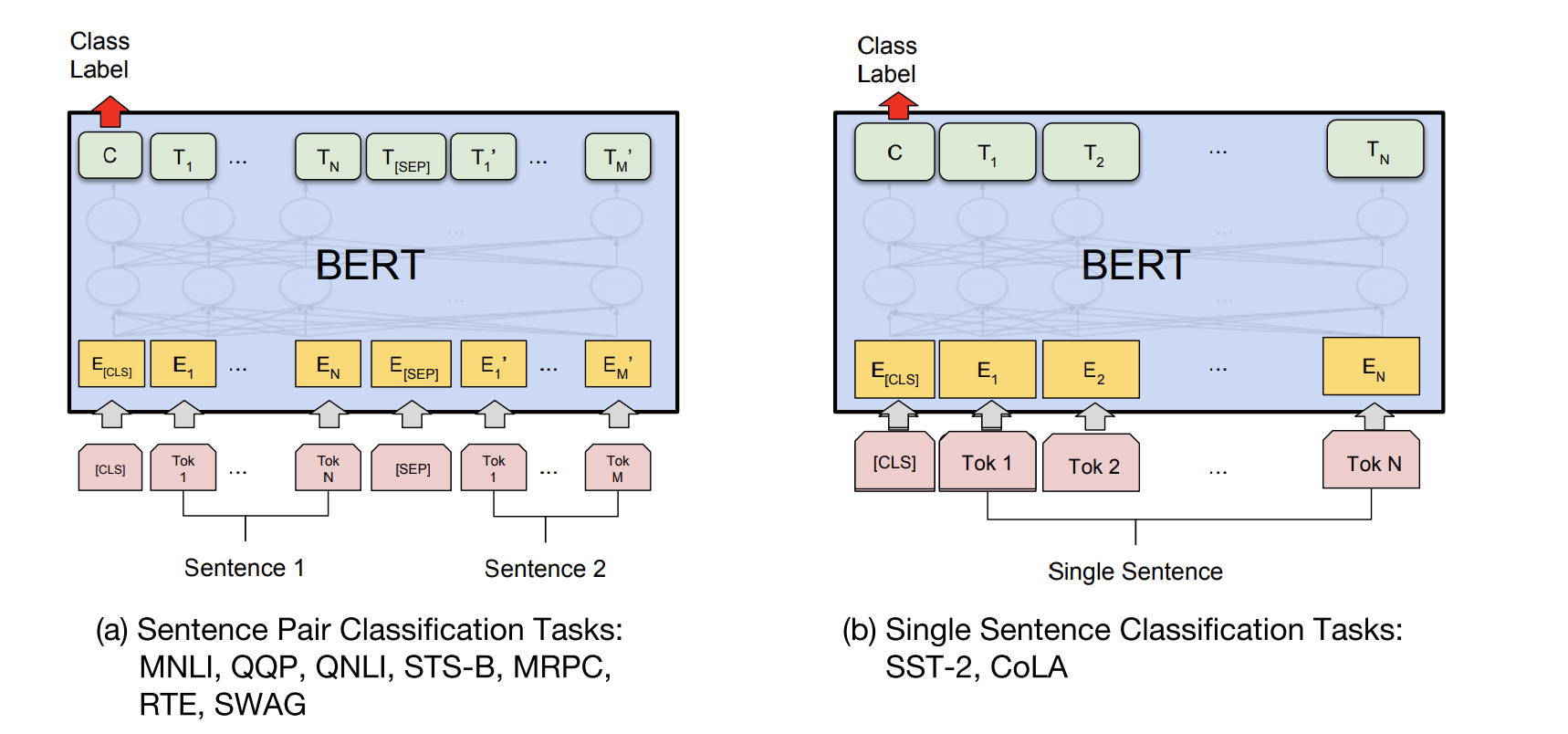 [CLS] A格式输入,如果是句子对,则使用[CLS] A [SEP] B格式输入 - 只取标记符