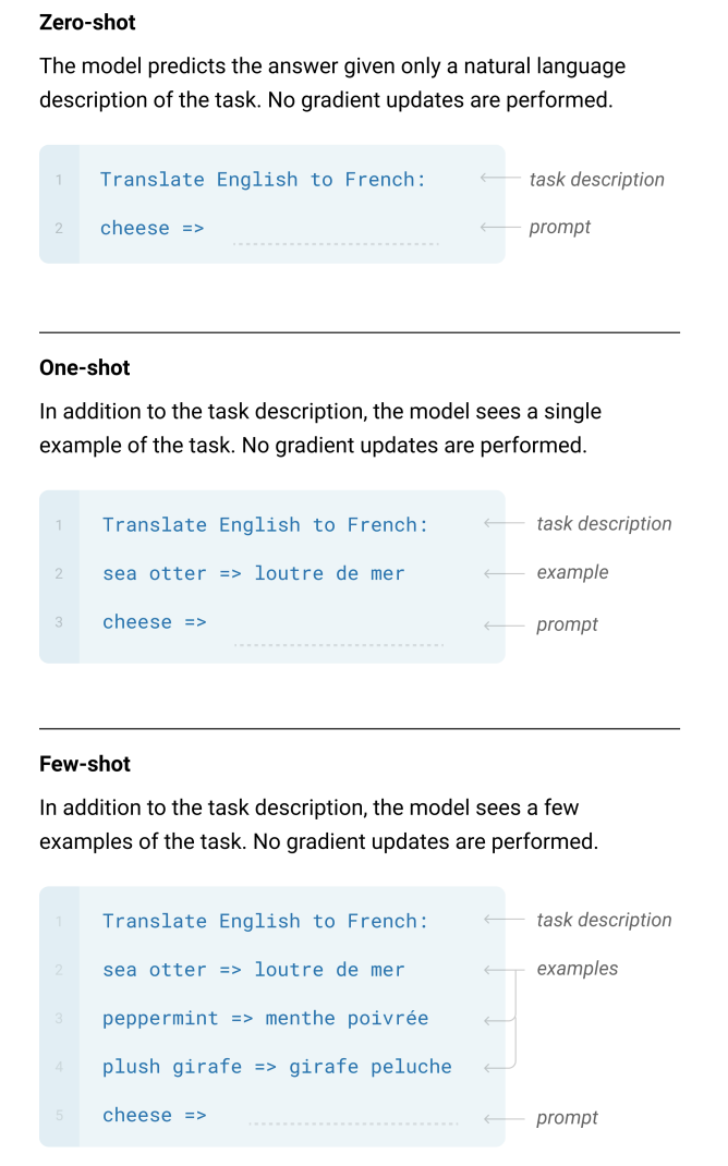使用了few-shot,即预测的时候允许需提供少量的已标注的任务数据作为参考(当然,few-shot是包含了one-shot和zero-shot的)。这里的few-shot样本在原论文中虽然是称为一个learning的过程,但实际上还是作为预测样本进行输入,所以是不会更新网络的参数的。例如