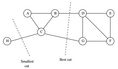 首先定义两个簇 \((C_a,C_b)\) 之间的权重为 \[ W(C_a,C_b) = \sum_{i \in C_a,j \in C_b} w_{ij} \] 按照聚类指标,聚类使得簇间距离最大化,簇内距离最小化。对应到用图的文字对其进行进行转述:分割使得连接不同子图的边的权重(相似度)尽可能低,同子图内的边的权重(相似度)尽可能高。